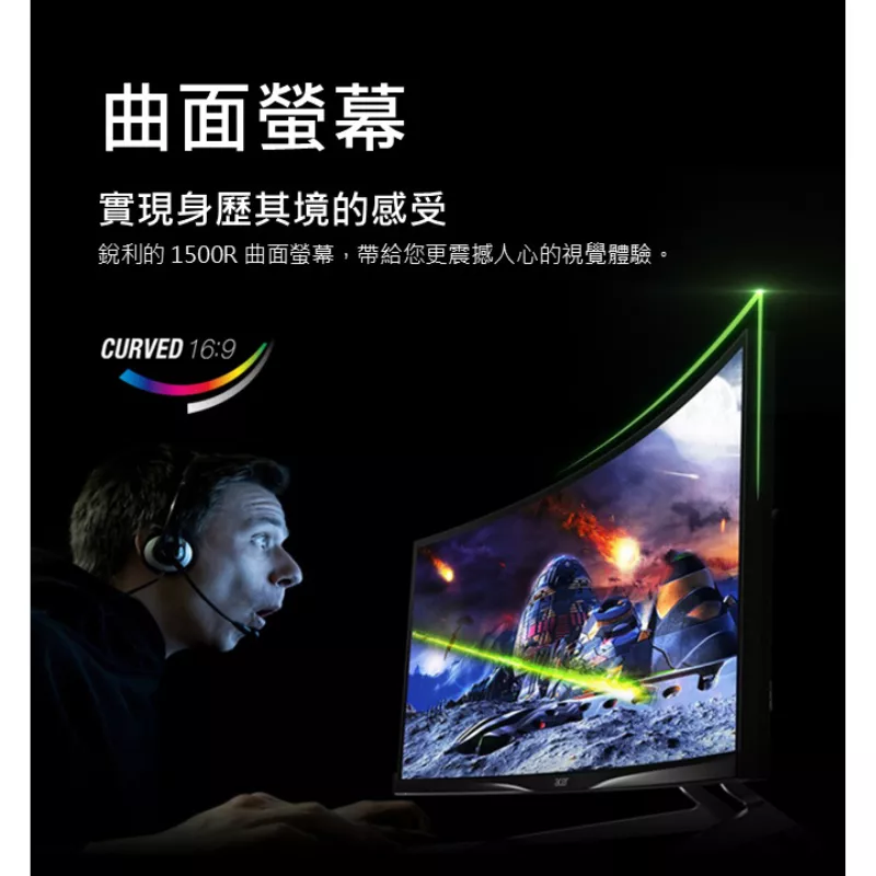 ✅ 沉浸曲面設計:1500R 曲面螢幕,提升遊戲與影音沉浸感。